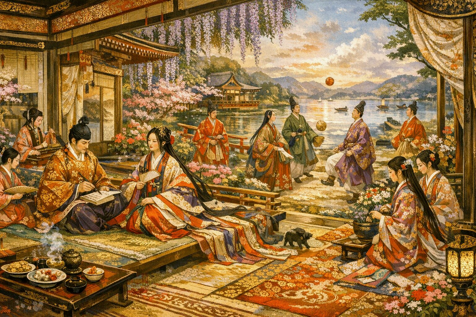 当時はメールもなく、恋愛相手との通信手段は従者に和歌や扇子や花などの小物を届けさせたらしい。